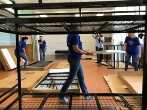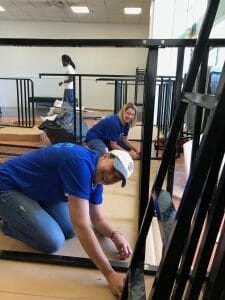 In addition to the storage shed project, it also turned out that on that day we had a set of new bunk beds that needed to be assembled, so the group from Chevron jumped in to help our staff put together 32 bunk beds as well!