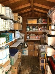 This year we planned to have the group organize and inventory the storage shed at our Dwight Way Shelter. When they pulled everything out to sort, they discovered that most of the shelves in the shed were ready to collapse. Instead of just putting everything back on the floor, as we suggested, they took it upon themselves to purchase and install a whole new set of shelves!