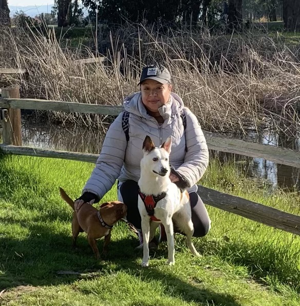 Fatima takes her two dogs, Mozzarella and Timbs, out hiking whenever she can. Their favorite place to go is Pinole Park.