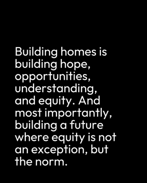 By building homes, we're building hope. We're building opportunities. We're building understanding and equality. And most importantly, we're building a future where equity is not an exception, but the norm.