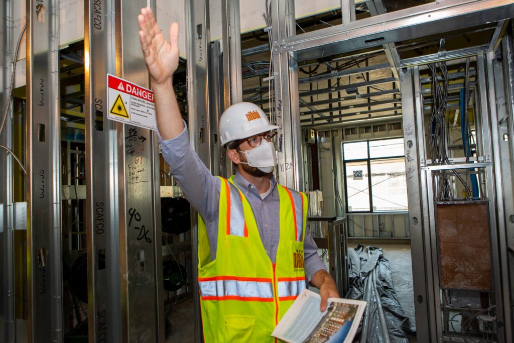 Project Manager, Jon McCall explaining the affordable housing apartments on the BRIDGE side of the Berkeley Way development. -