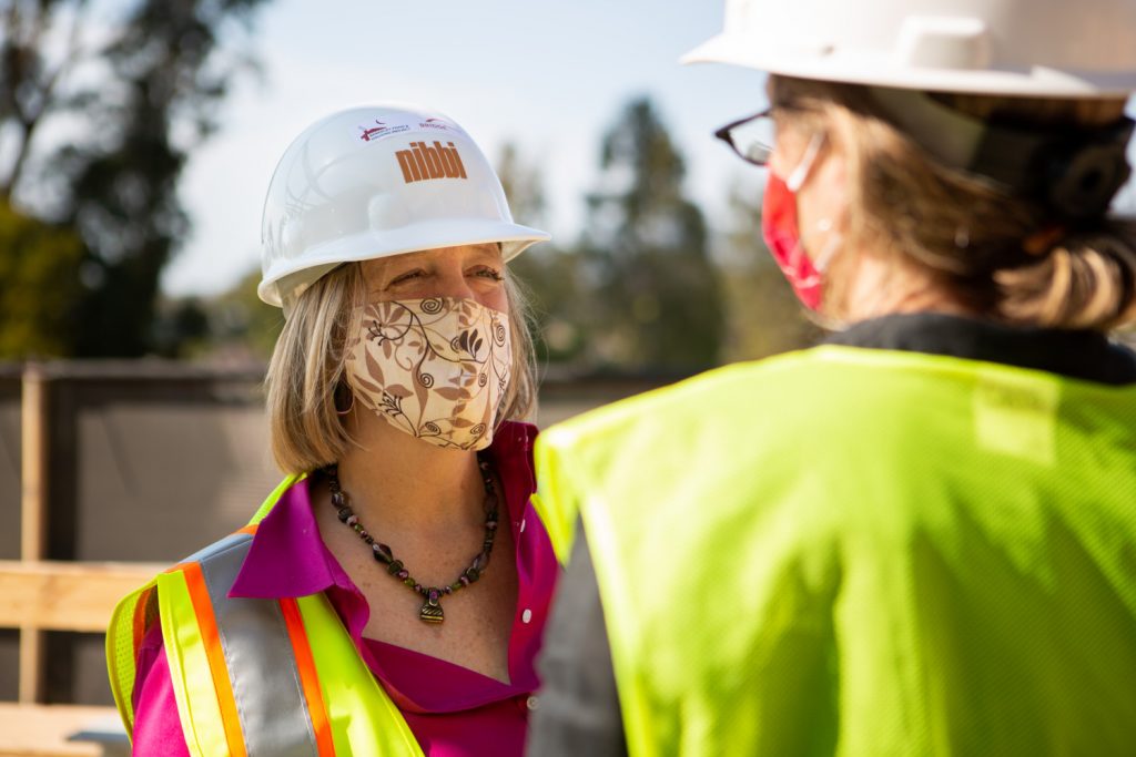 BFHP Executive Director, Calleene Egan speaking to Mayor Arreguin and Councilmember Harrison in what will be the BFHP Hope Center Community Room. -
