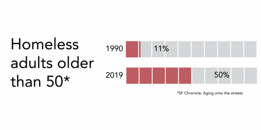 older homeless adults is growing at an alarming rate. In the Bay Area, the